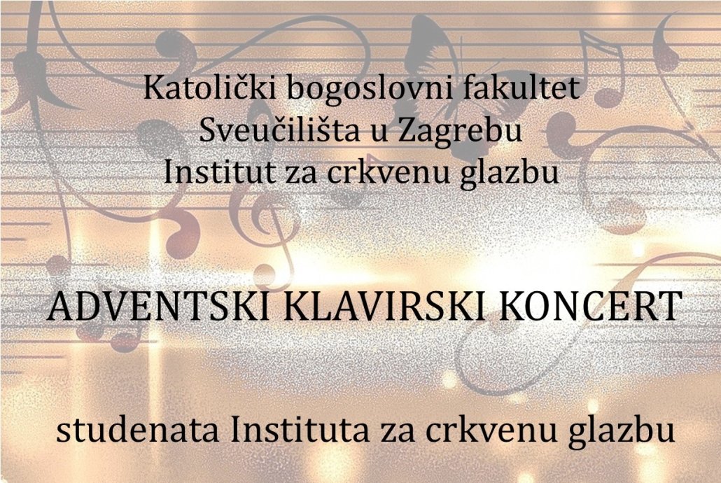 U srijedu, 20. prosinca 2023. u 16 sati održat će se adventski klavirski koncert studenata Instituta za crkvenu glazbu u prostorijama Fakulteta u auli na III. katu.