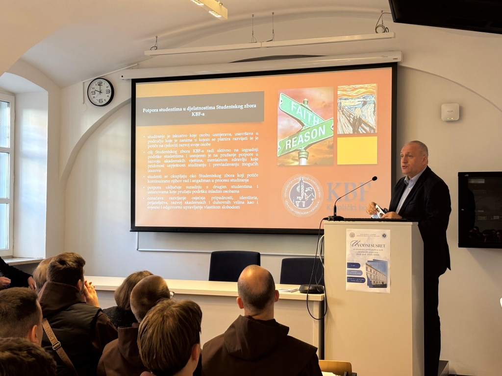 Cilj ovoga uvodnog susreta – uz izraze dobrodošlice – bio je pružiti podršku novim studentima u njihovim početnim koracima studijskoga odgojno-obrazovnog procesa na KBF-u i time im olakšati pristup daljnjem tijeku studiranja.