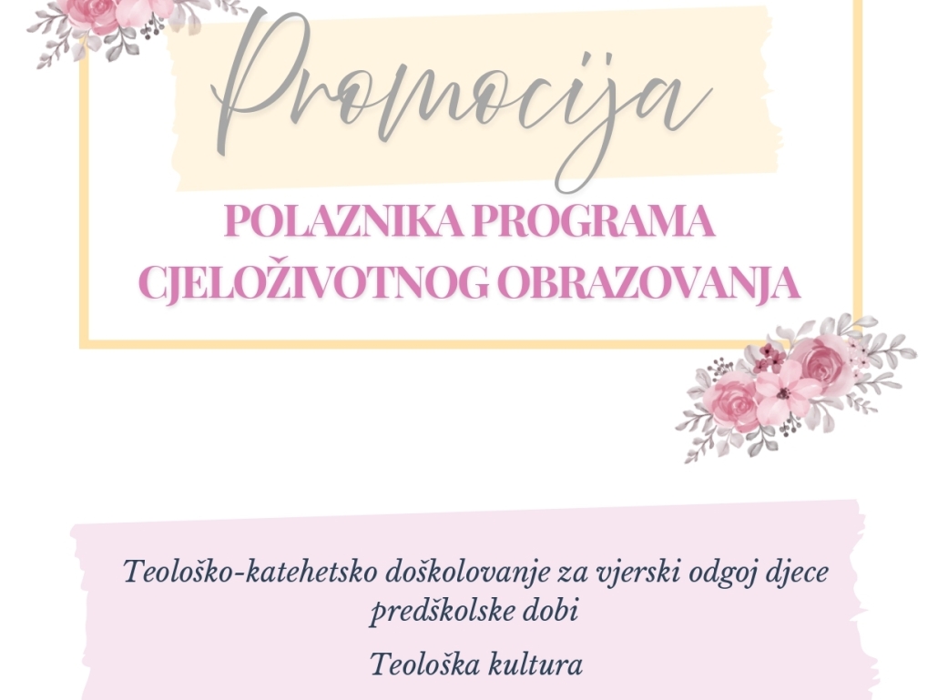 Na Katoličkome bogoslovnom fakultetu Sveučilišta u Zagrebu, 8. studenoga 2025. godine održana je svečana dodjela potvrda o završenim Programima cjeloživotnog obrazovanja Katoličkoga bogoslovnog fakulteta Teološko-katehetsko doškolovanje za vjerski odgoj djece predškolske dobi i Teološka kultura.