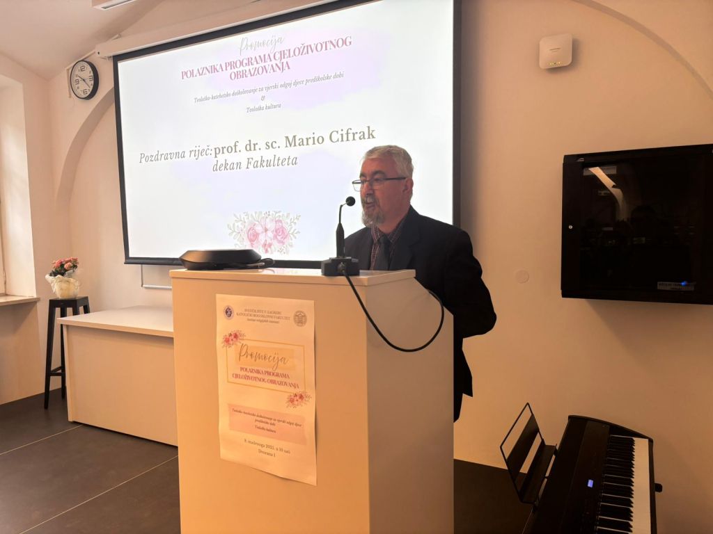 Dekan KBF-a Sveučilišta u Zagrebu prof. dr. sc. Mario Cifrak, zahvaljujući svima onima koji su sudjelovali u izvođenju programa Teološko-katehetsko doškolovanje za vjerski odgoj djece predškolske dobi i Teološka kultura kao i u pripremi svečanosti dodjele potvrda, izrazio je radost poradi toga što Katolički bogoslovni fakultet Sveučilišta u Zagrebu, izvođenjem programa cjeloživotnog obrazovanja, sudjeluje u vjerskom odgoju najmlađih, a odraslima omogućuje rast u vjeri.