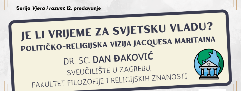 Poziv na predavanje dr. sc. Dana Đakovića: Je li vrijeme za svjetsku vladu? Političko-religijska vizija Jacquesa Maritaina