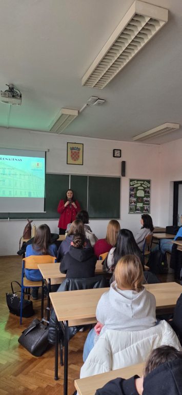 U ponedjeljak 24. studenoga 2025. godine na poziv Suzane Mravunac, profesorice vjeronauka i sveučilišne mentorice Katoličkoga bogoslovnog fakulteta Sveučilišta u Zagrebu. studijske programe KBF-a i mogućnosti zaposlenja predstavili su doc. dr. sc. Ivan Majić, studentica Petra Kašnar (bivša učenica Gimnazije, a sada studentica 3. godine sveučilišnoga prijediplomskog studija Teološko-religijske znanosti (dvopredmetni)) i Elizabeta Varjačić, tajnica Instituta religijskih znanosti.