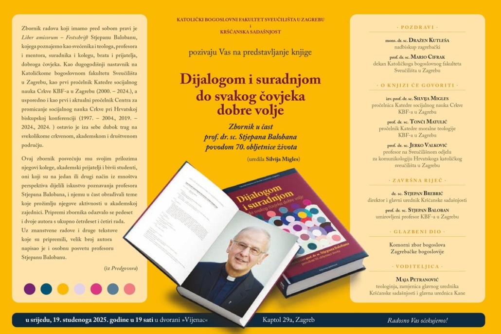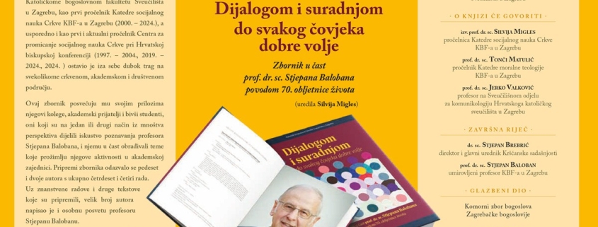 Predstavljanje knjige Dijalogom i suradnjom do svakog čovjeka dobre volje – Zbornik u čast prof. dr. sc. Stjepana Balobana povodom 70. obljetnice života