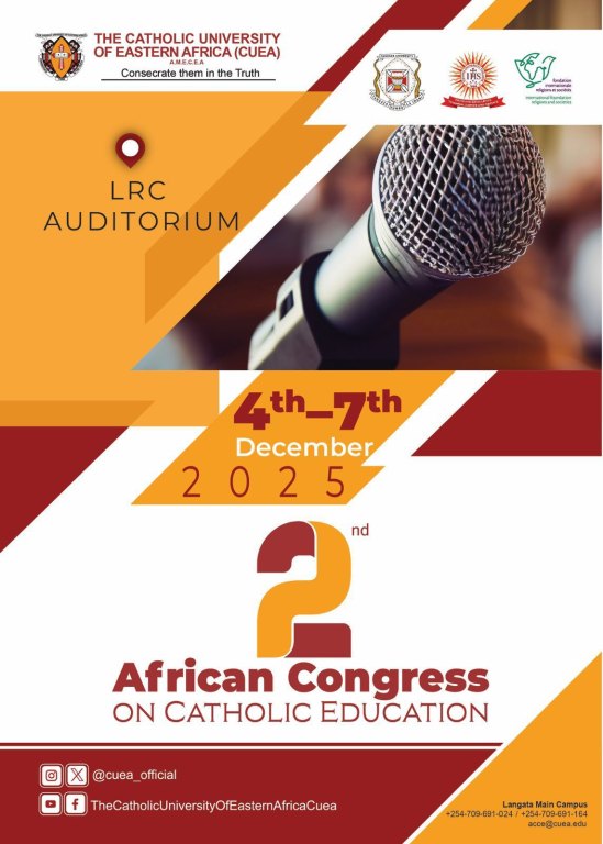 2. Drugi afrički kongres o katoličkom odgoju i obrazovanju održan je od 4. do 7. prosinca 2025. godine na Katoličkom sveučilištu istočne Afrike (CUEA) u Nairobiju u Keniji. Međunarodni skup koji je okupio stotinjak sudionika iz brojnih zemalja afričkog kontinenta te nekolicinu iz Europe te Sjeverne Amerike bio je posvećen aktualnoj temi “Katolički odgoj i obrazovanje i promicanje znakova nade u afričkom kontekstu“. Suorganizatori tog globalnog događaja bili su: Sveučilište Tangaza i Sveučilišni koledž Hekima iz Nairobija te Međunarodna zaklada Religije i društva i Institut Afričkog odgojno-obrazovnog saveza. Velika dvorana Katoličkog sveučilišta Istočne Afrike tih je nekoliko dana, prema riječima organizatora, postala „epicentar strateške i duhovne briljantnosti, dočekujući kardinale, nadbiskupe, rektore, vatikanske dužnosnike i svjetski poznate stručnjake“ (https://x.com/cuea_official/status/1996251405976289388), a dakako i brojne nositeljice i nositelje odgovornosti za katoličke odgojno-obrazovne ustanove u pojedinim zemljama kao i druge zainteresirane. Sve je srdačno dočekivao često ponavljani pozdrav „Karibuni sana“ koji na svahiliju znači: Dobro došli!