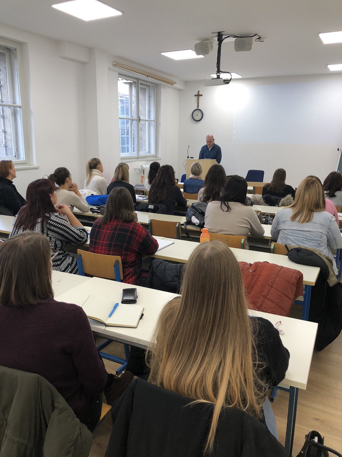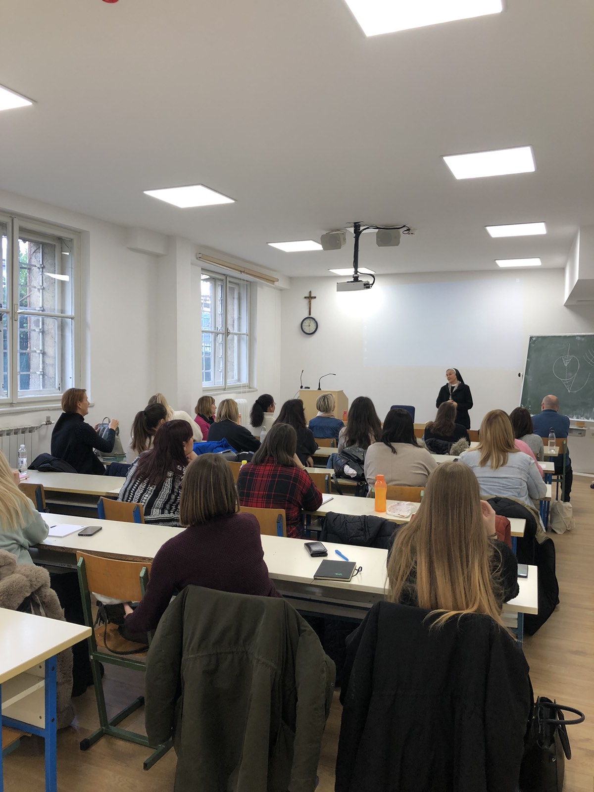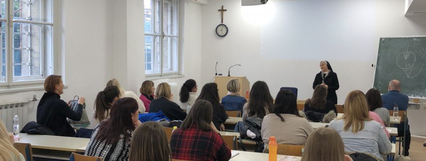 Pozdravima se također pridružila i doc. dr. sc. Kata s. Amabilis Jurić, koordinatorica nastavnog programa doškolovanja s kratkim uvodnim predavanjem i važnim napomenama. Među ostalim, naglasila je da je riječ o programu za stručno osposobljavanje odnosno usavršavanje predškolskih odgojitelja i odgojiteljica koji već imaju stručnu spremu utvrđenu propisima Republike Hrvatske, ali im nedostaje teološko-katehetska i didaktičko-metodička izobrazba u vjerskom odgoju za tu dob. Također je podsjetila da svoje utemeljenje navedeni program doškolovanja ima u Ugovorima između Svete Stolice i Republike Hrvatske o suradnji na području odgoja i kulture, te u provedbenom Ugovoru o katoličkom vjeronauku u javnim školama i vjerskom odgoju u javnim predškolskim ustanovama, sklopljenom između Vlade RH i HBK.
