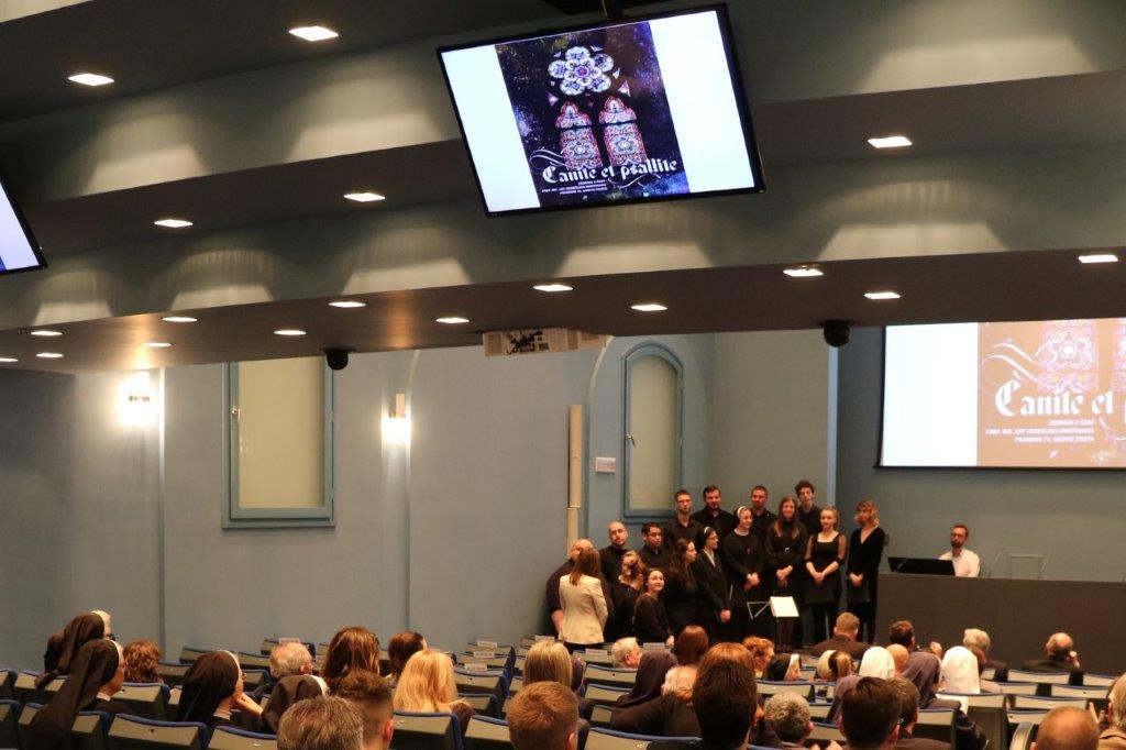 U glazbenome djelu programa nastupio je mješoviti zbor studenata Instituta za crkvenu glazbu pod vodstvom prof. Danijele Župančić, uz glazbenu pratnju Milana Hibšera, doc. art. Zbor je otpjevao tri skladbe: Laudate Deo (W. A. Mozart, obrada M. Martinjak), Hvalite Gospodina (M. Martinjak) te Soli Deo gloria (M. Martinjak).